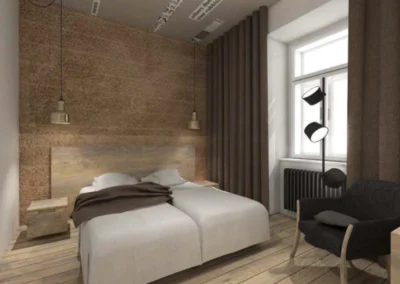 Komplexní řízení přípravy, architektonické soutěže, projekční práce, povolovací procesy, realizace přestavby, nástavby a dostavby hotelu.